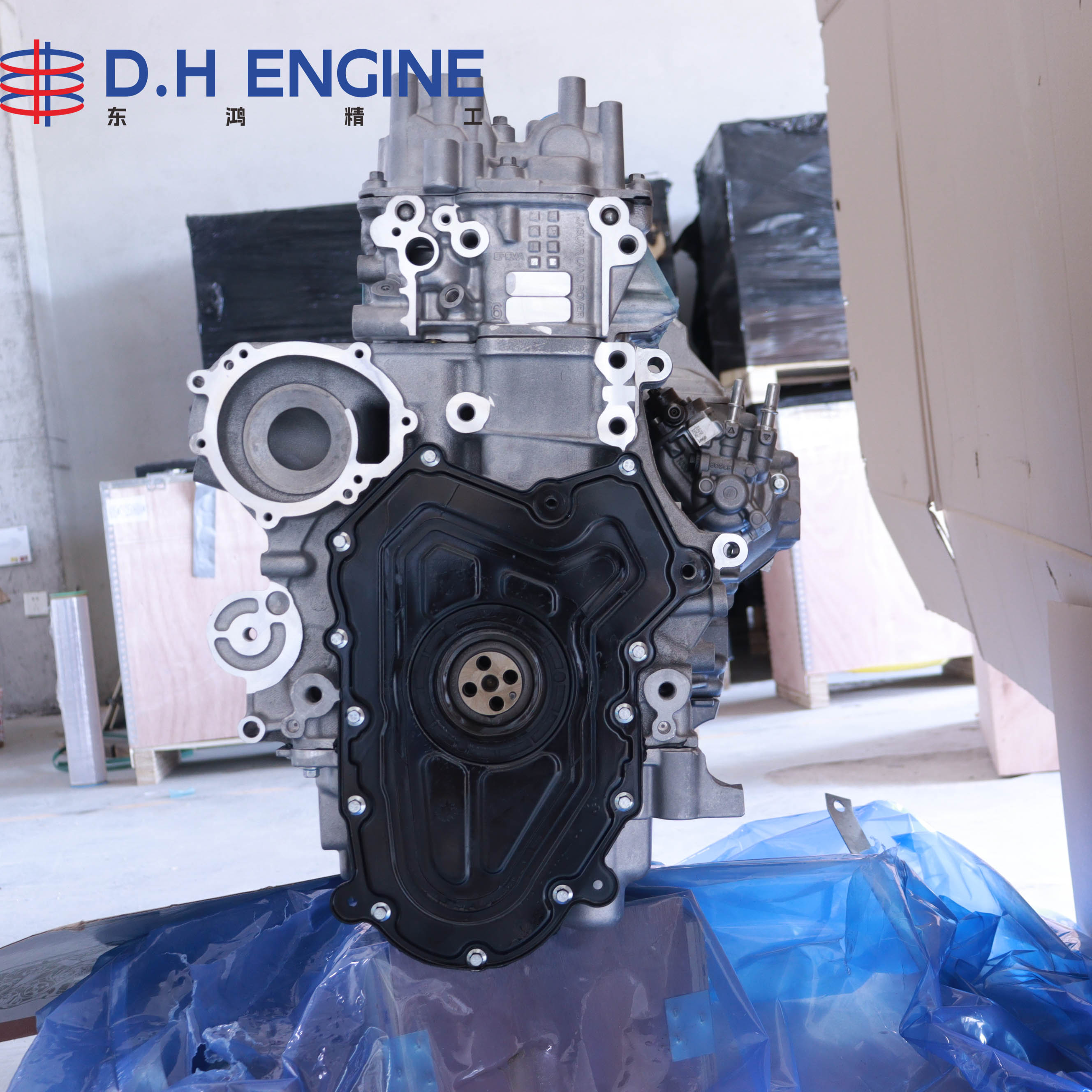 Each 204DT engine long block is securely packed in a reinforced wooden crate with anti-rust